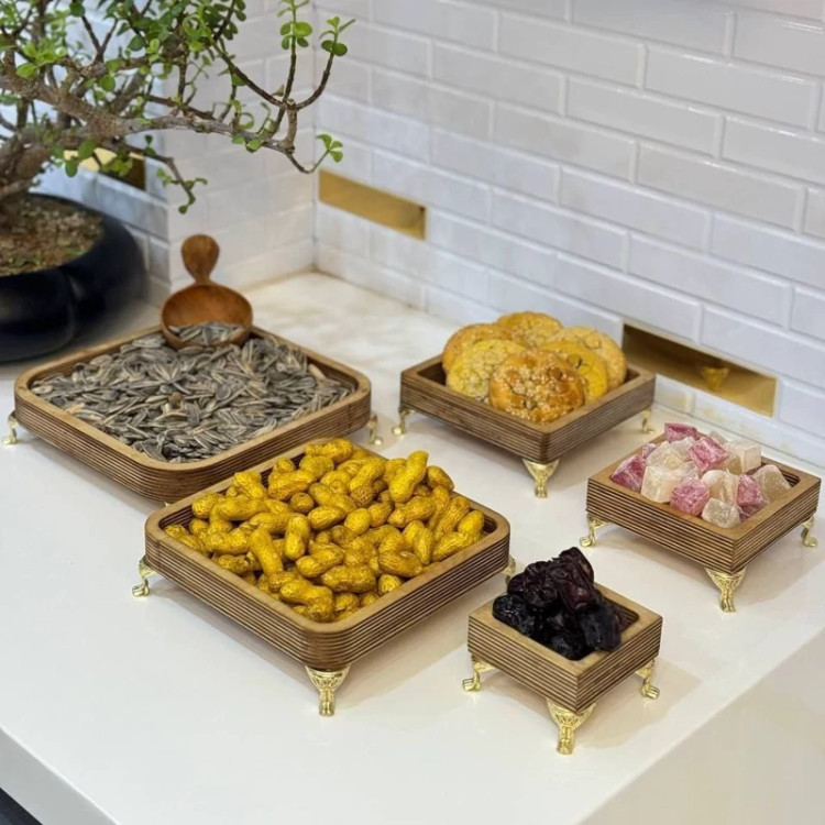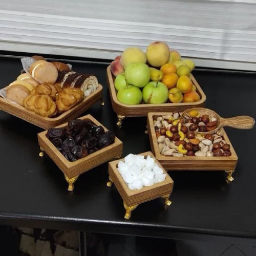 سینی اردو خوری ۵ تیکه طرح مربع پایه دار