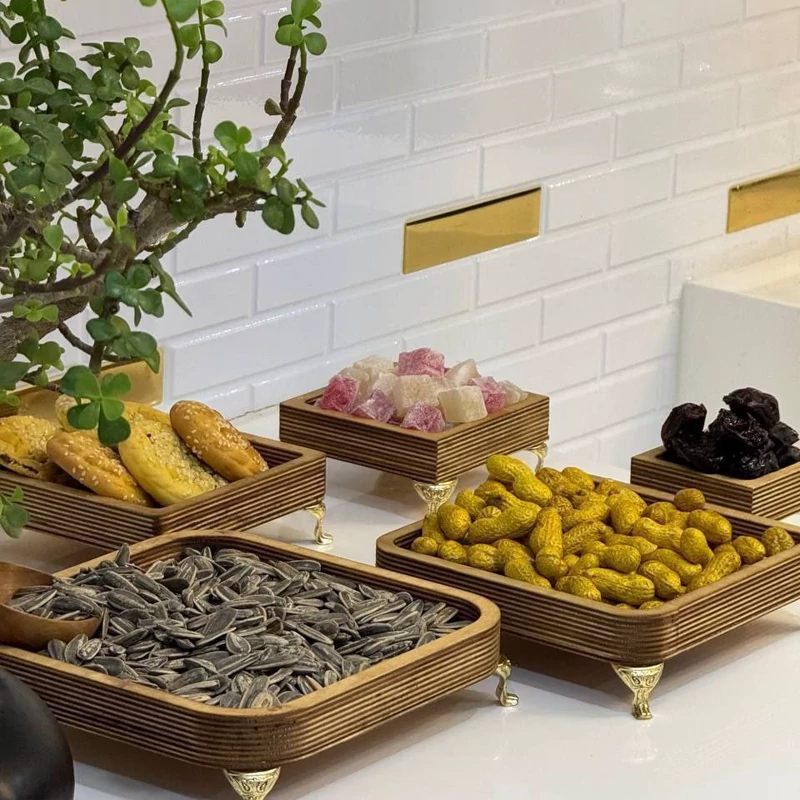 سینی اردو خوری ۵ تیکه طرح مربع پایه دار