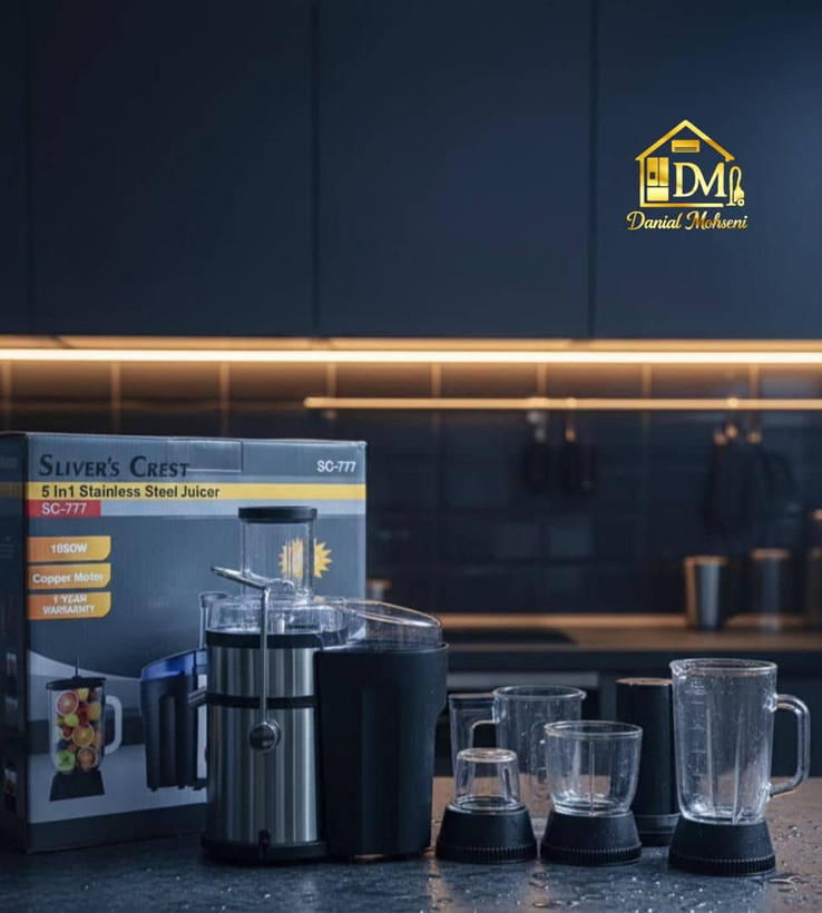اگر دنبال یک دستگاه چند کاره، قدرتمند و باکیفیت برای راحتتر شدن آشپزیات هستی،آبمیوهگیری استیل ضد زنگ5 در1 مدل SC-777 برند Slivers Crest دقیقاً همون چیزییه که بهش نیاز داری!