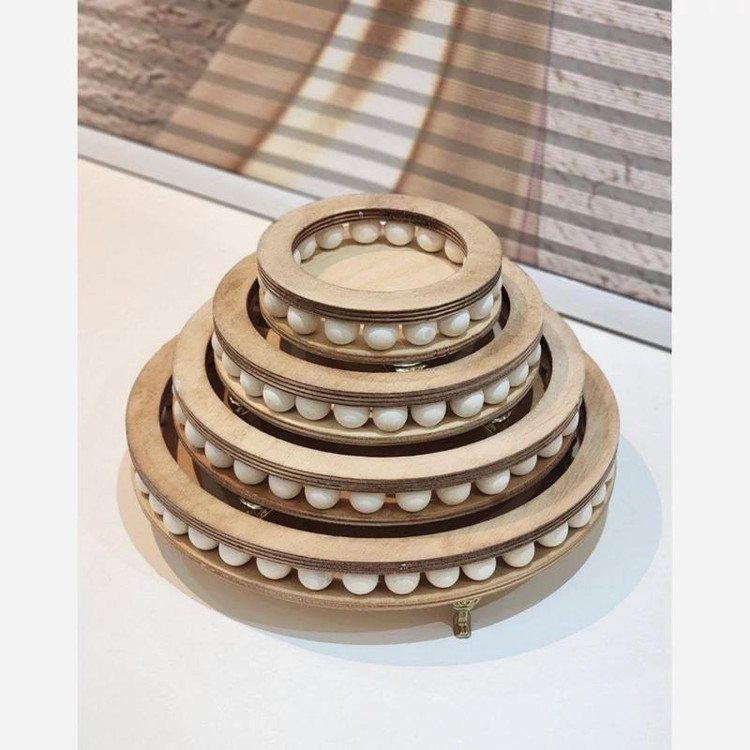 این سرویس از چوب باکیفیت ساخته شده که هم سبک و مقاومه و هم حس گرم و طبیعی به فضا میده. ظاهر متفاوت و خاص اون باعث شده که هم برای مهمونیهای خاص و هم برای دکور خونه یا حتی کافیشاپها و مزونها عالی باشه. رنگ طبیعی چوب در کنار مهرههای تزئینی، حس دستساز بودن و خاص بودن محصول رو به خوبی منتقل میکنه.