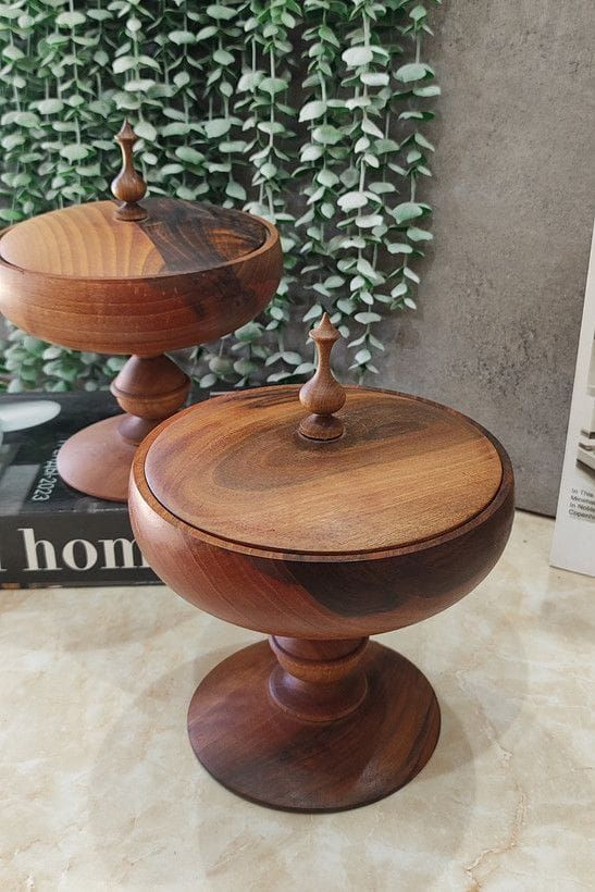 🌰✨ ظرف آجیل و شکلاتخوری پایهدار چوب گردو ✨🌰