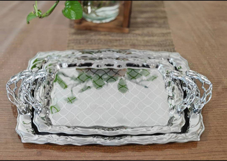 سینیهای دو تایی زیبا، گزینهای عالی برای سرو انواع خوراکی و نوشیدنی! این سینیها با طراحی جذاب و کیفیت عالی، به شما کمک میکنند تا مهمانیها و دورهمیهای خود را به بهترین نحو برگزار کنید.