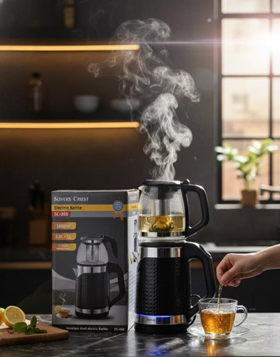 چایساز ست کتری برقی و قوری استیل ضد زنگ Silver Crest مدل SC-2