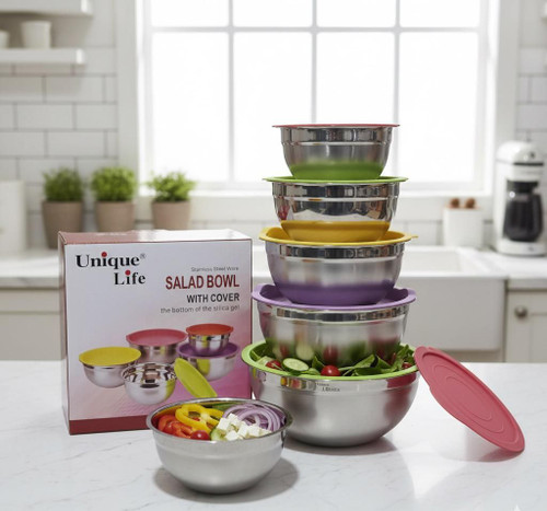 لگن آشپزخانه 5عددی استیل درب دار یونیک لایف